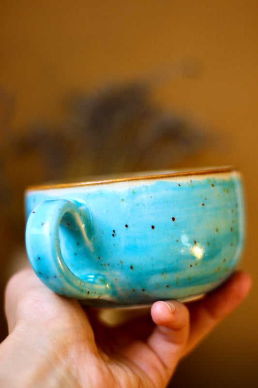Ručná výroba z kameniny. Šálky sú vytočené na kruhu a pálené dvakrát na vysokých teplotách.