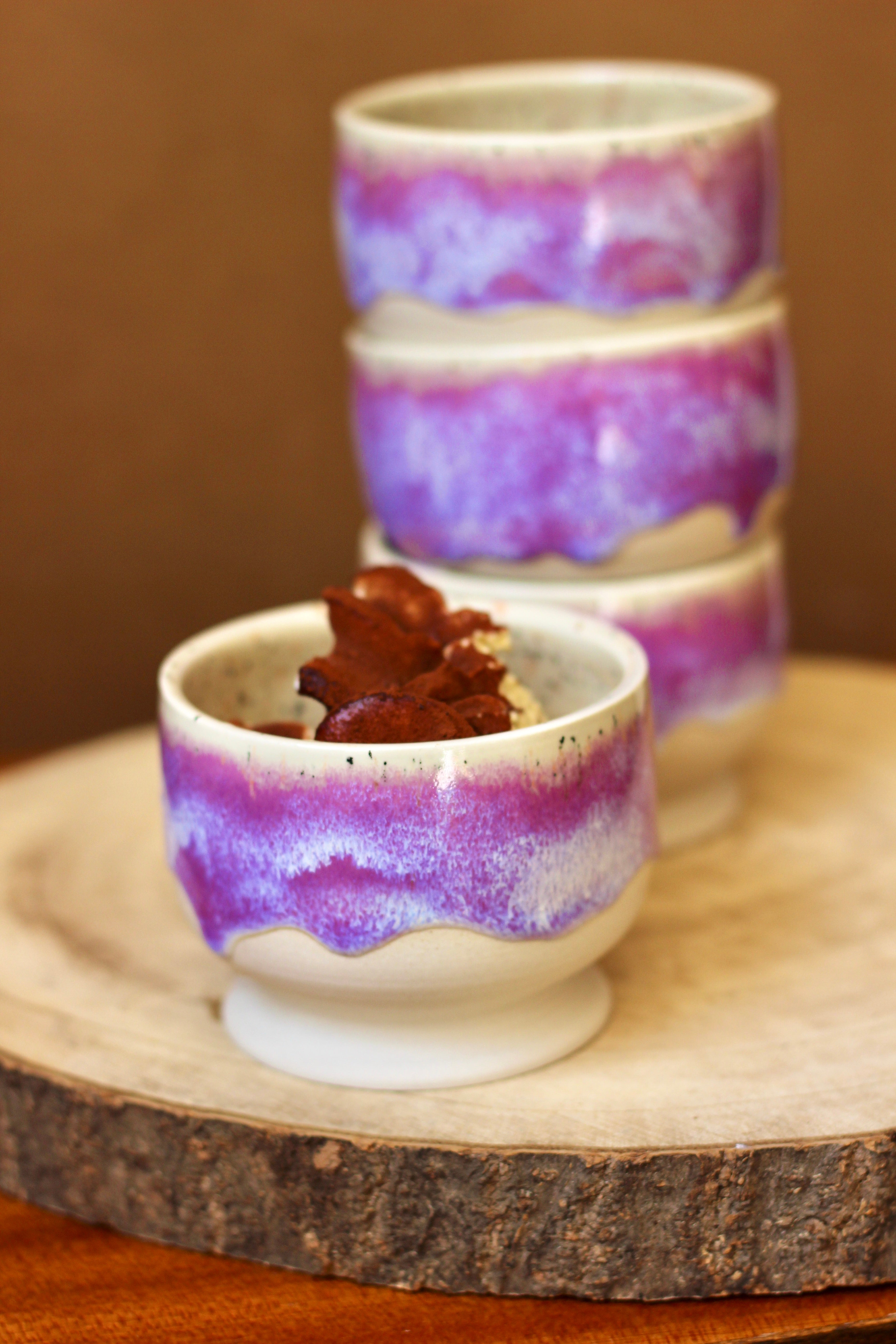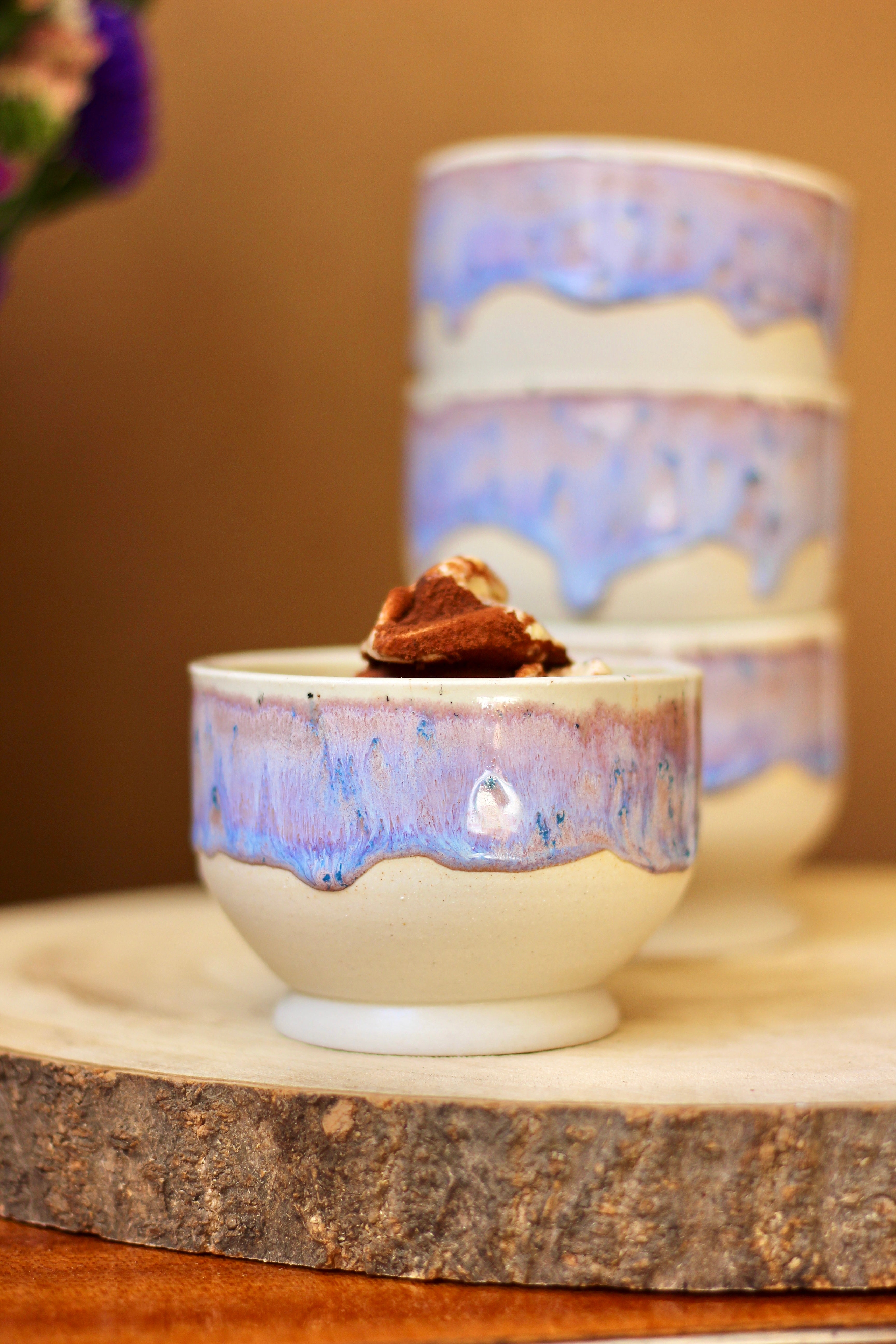 Ručná výroba z kameniny. Šálky sú vytočené na kruhu a pálené dvakrát na vysokých teplotách.