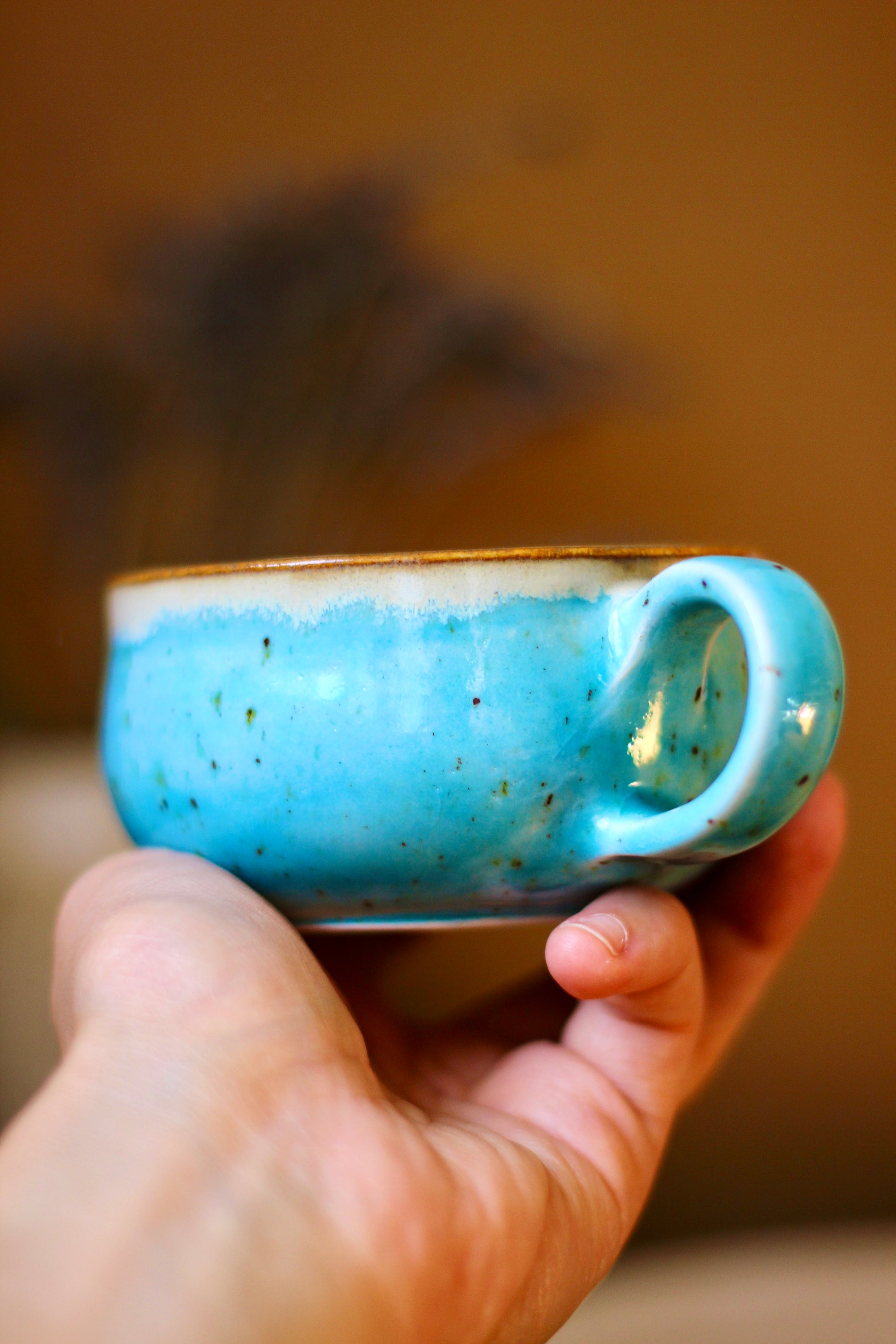 Taza artesanal, perfecta para la bebida que elijas. Está hecha a torno de gres o porcelana de alta calidad y horneada dos veces a altas temperaturas, lo que la hace perfecta para el uso diario.