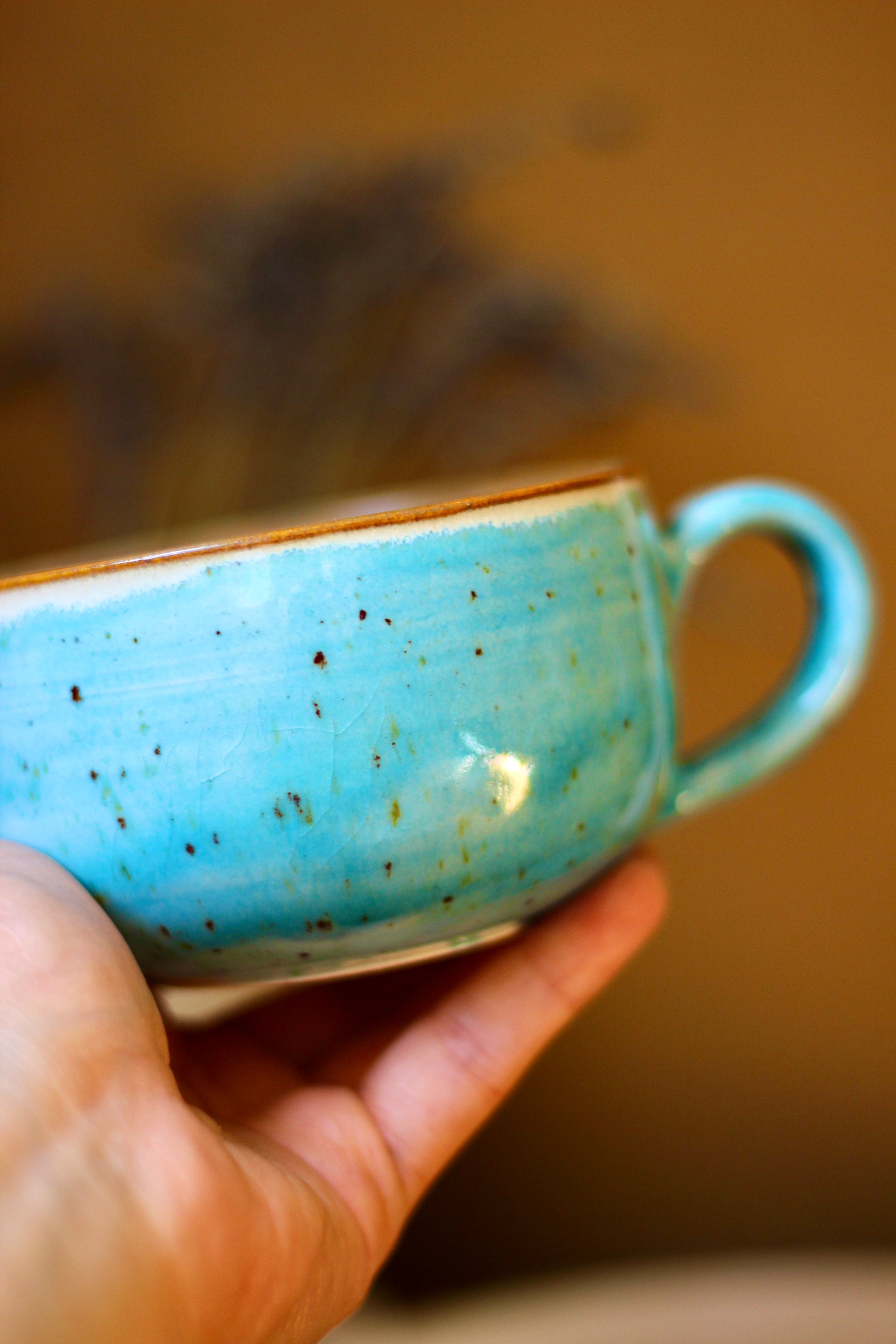 Taza artesanal, perfecta para la bebida que elijas. Está hecha a torno de gres o porcelana de alta calidad y horneada dos veces a altas temperaturas, lo que la hace perfecta para el uso diario.