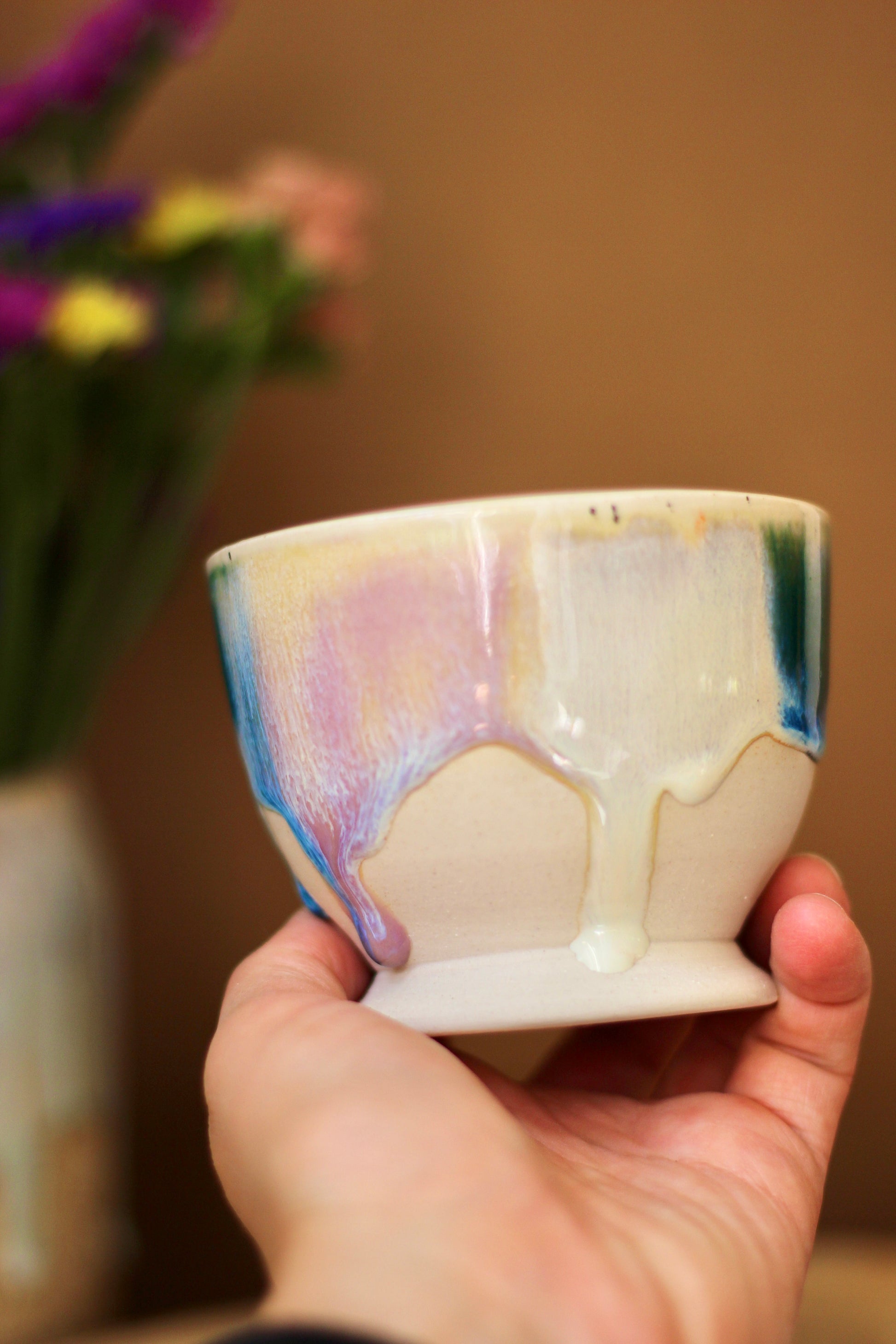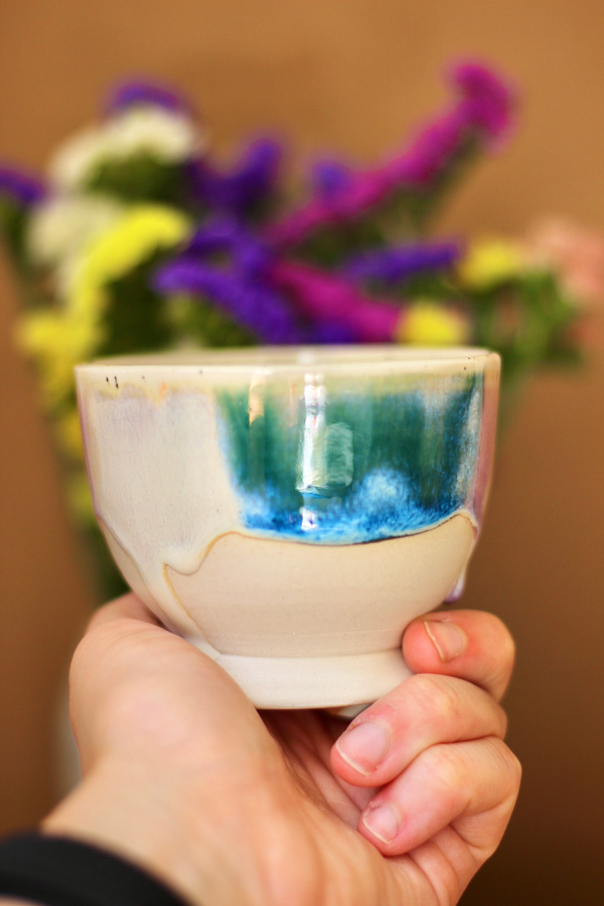 Ručne robený pohár na zmrzlinu – točený na hrnčiarskom kruhu z kvalitnej kameninovej hliny.