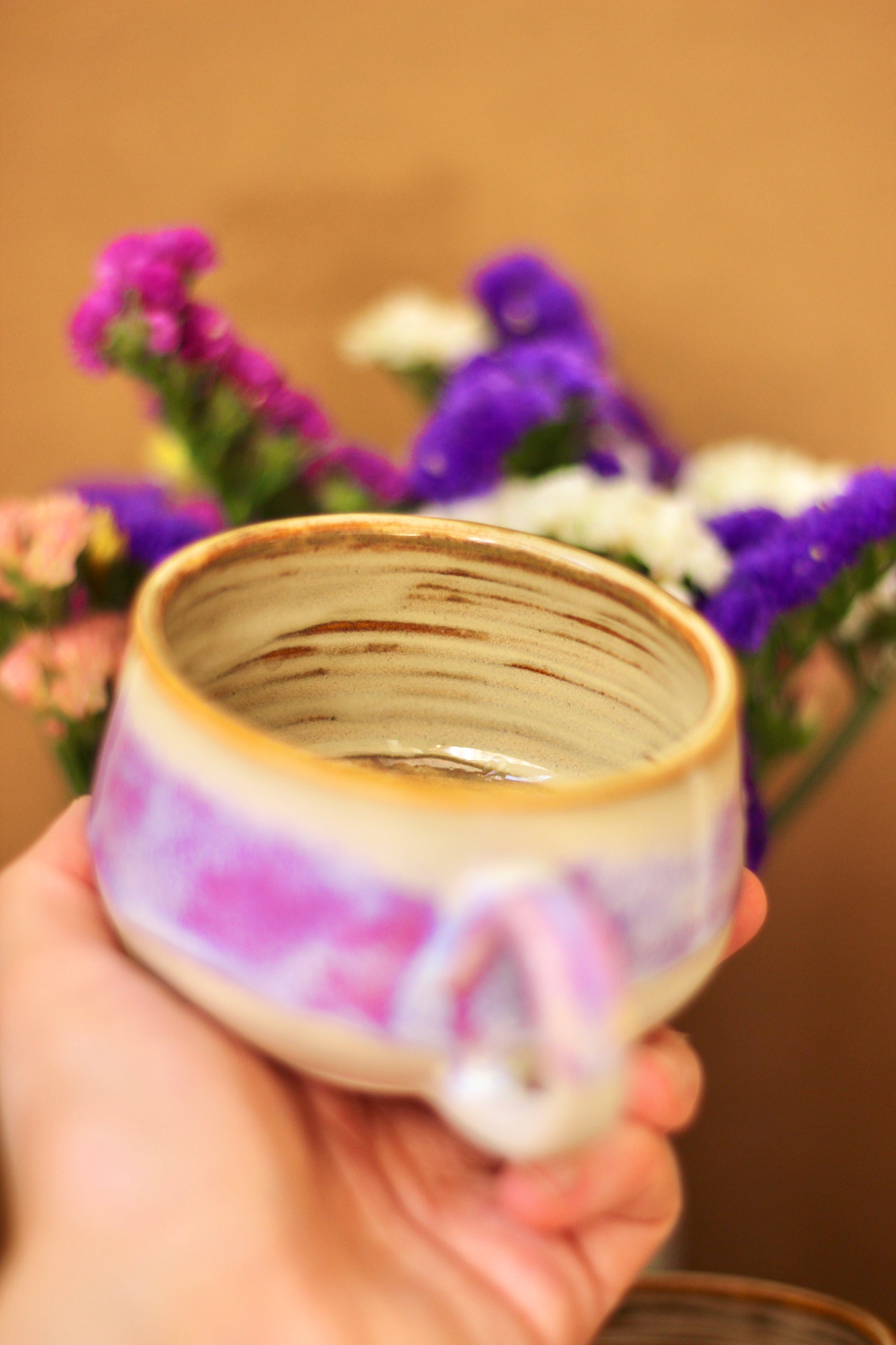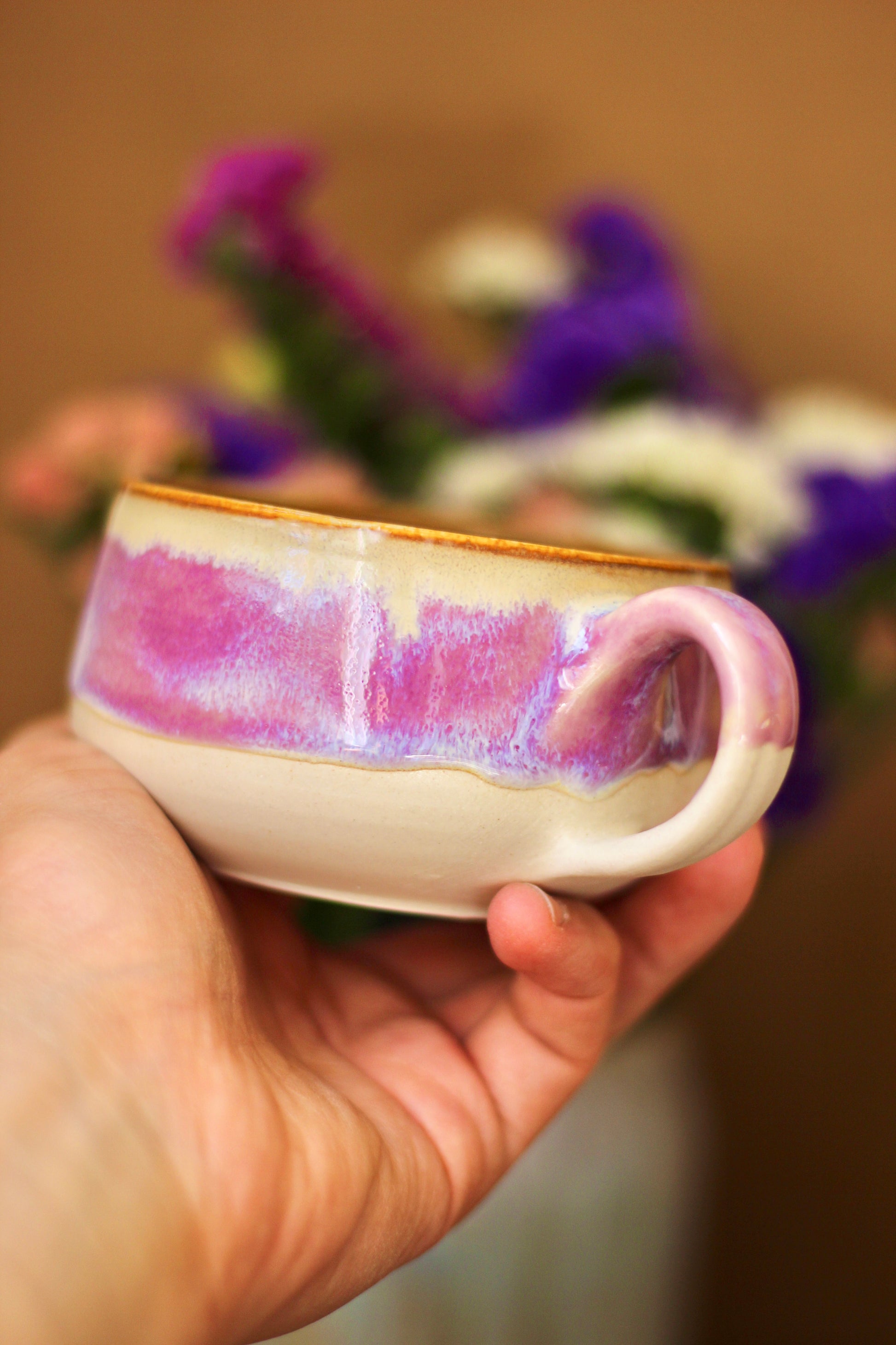 Taza artesanal, perfecta para la bebida que elijas. Está hecha a torno de gres o porcelana de alta calidad y horneada dos veces a altas temperaturas, lo que la hace perfecta para el uso diario.