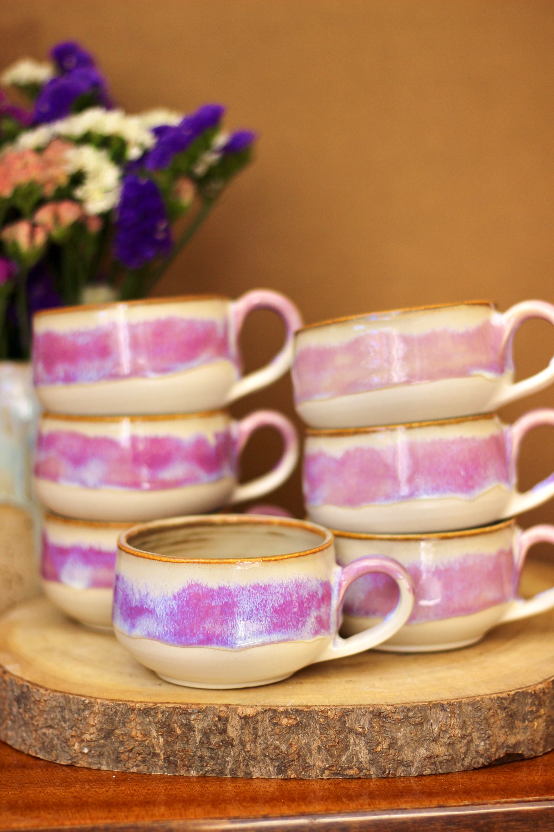 La taza está esmaltada con un esmalte agradable a la vista y al tacto. El interior está esmaltado con uno de los siguientes esmaltes: "Abedul, Vainilla Jaspeada, Sangría o Turquesa Texturizado". Vea el esmalte en la imagen. La base de la taza no está esmaltada.