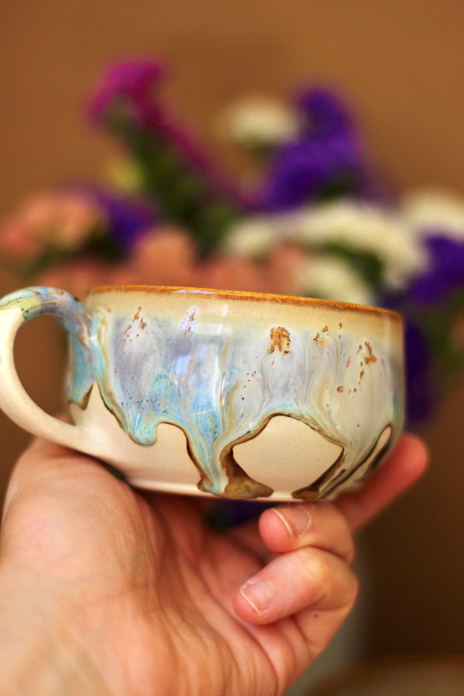 Taza artesanal, perfecta para la bebida que elijas. Está hecha a torno de gres o porcelana de alta calidad y horneada dos veces a altas temperaturas, lo que la hace perfecta para el uso diario.
