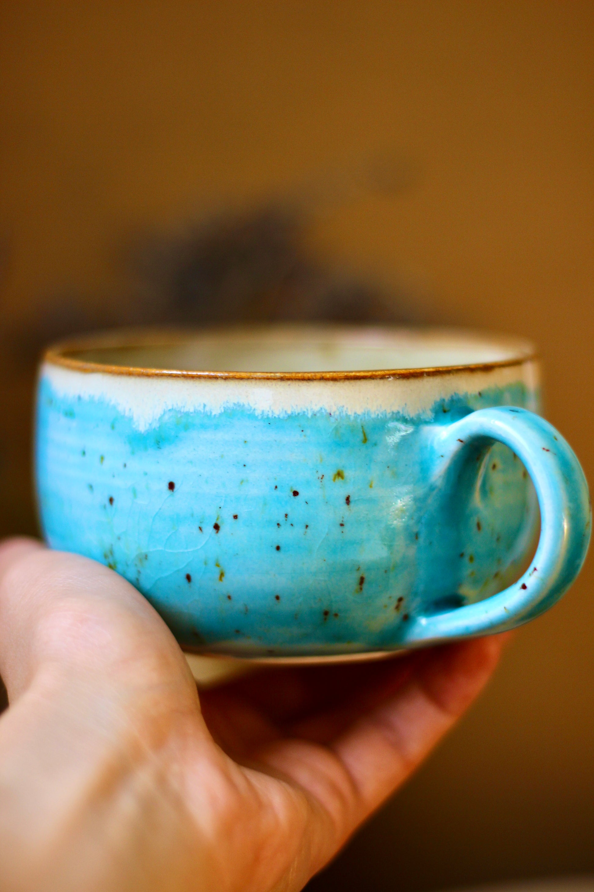 Taza artesanal, perfecta para la bebida que elijas. Está hecha a torno de gres o porcelana de alta calidad y horneada dos veces a altas temperaturas, lo que la hace perfecta para el uso diario.