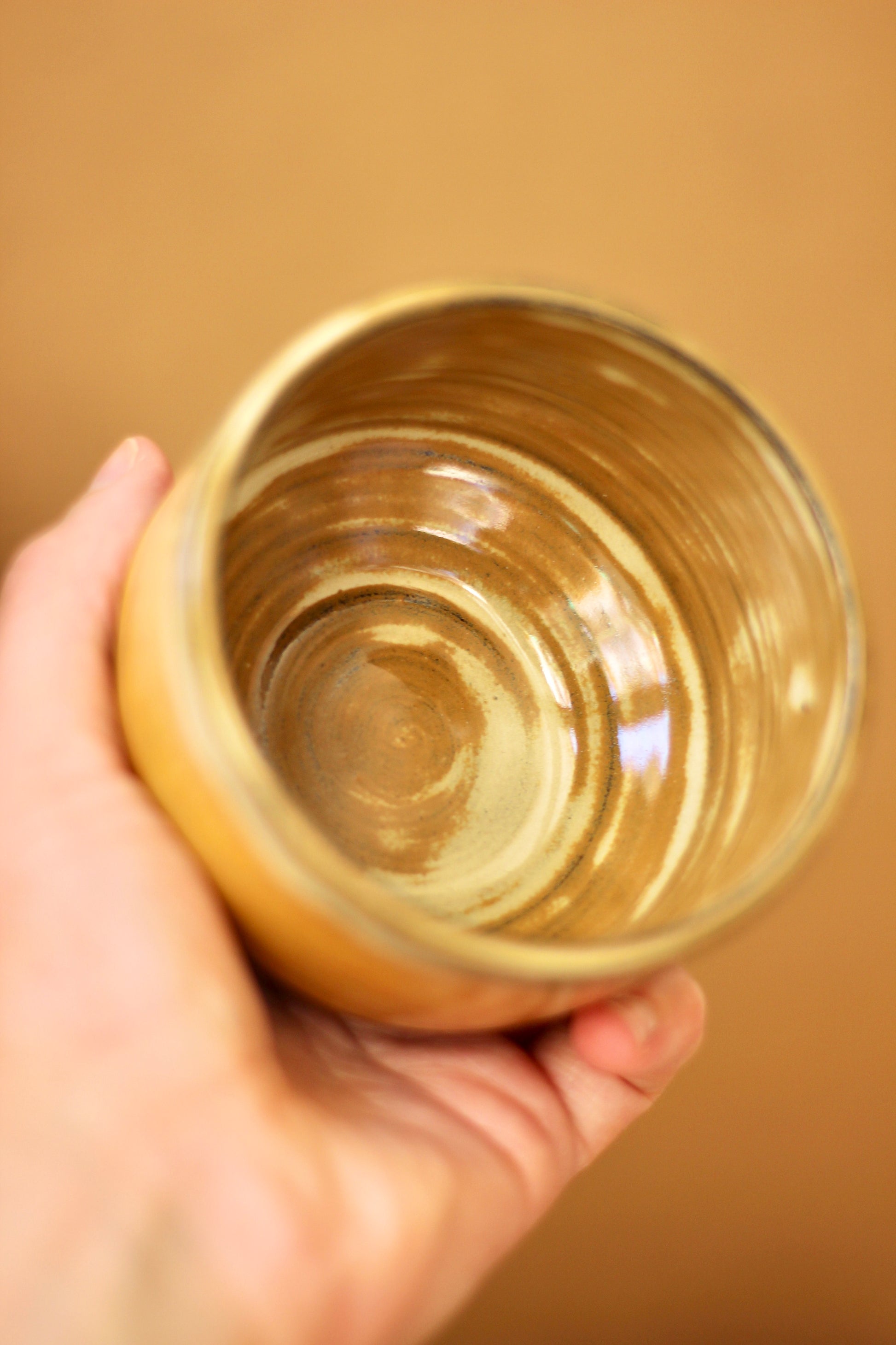 La taza está esmaltada con un esmalte agradable a la vista y al tacto. El interior está esmaltado con uno de los siguientes esmaltes: "Abedul, Vainilla Jaspeada, Sangría o Turquesa Texturizado". Vea el esmalte en la imagen. La base de la taza no está esmaltada.