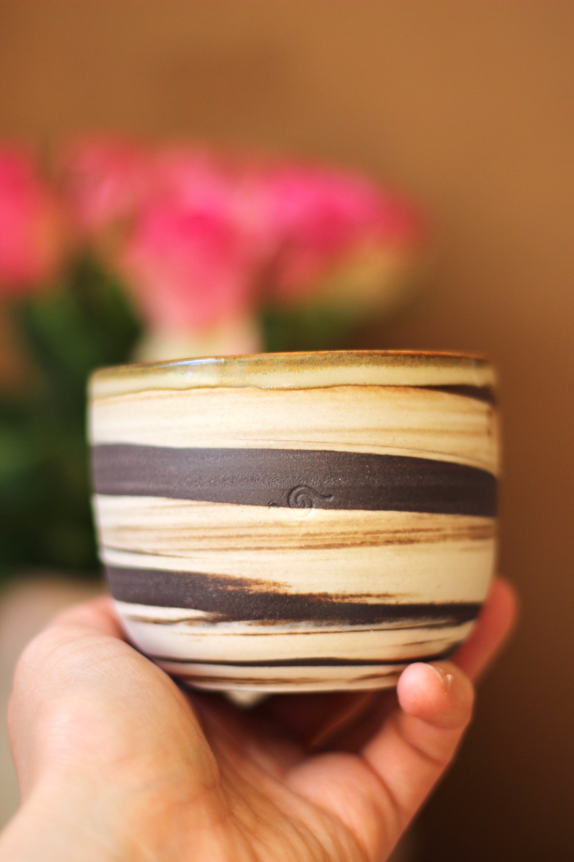 Taza artesanal, perfecta para la bebida que elijas. Está hecha a torno de gres o porcelana de alta calidad y horneada dos veces a altas temperaturas, lo que la hace perfecta para el uso diario.