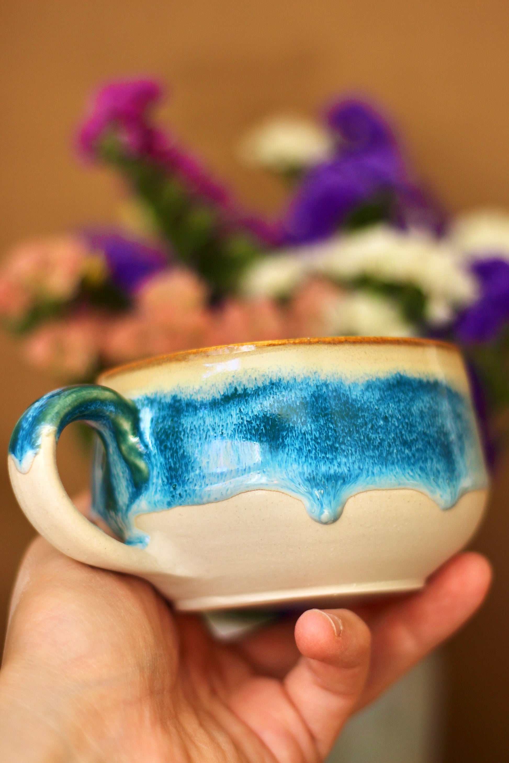 Taza artesanal, perfecta para la bebida que elijas. Está hecha a torno de gres o porcelana de alta calidad y horneada dos veces a altas temperaturas, lo que la hace perfecta para el uso diario.