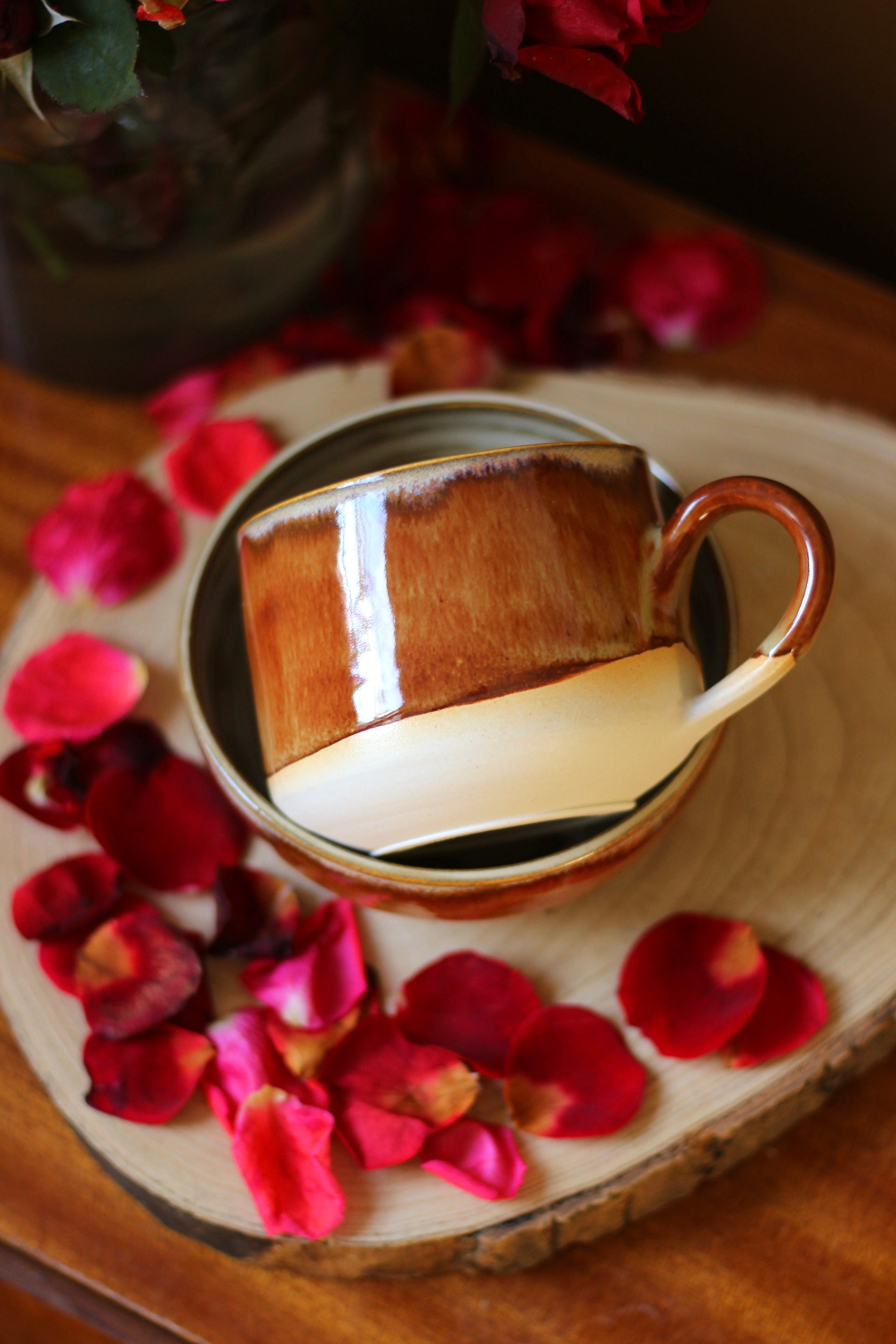 Keramický hrnček je vyrobený z kameniny, ručná práca na kruhu.