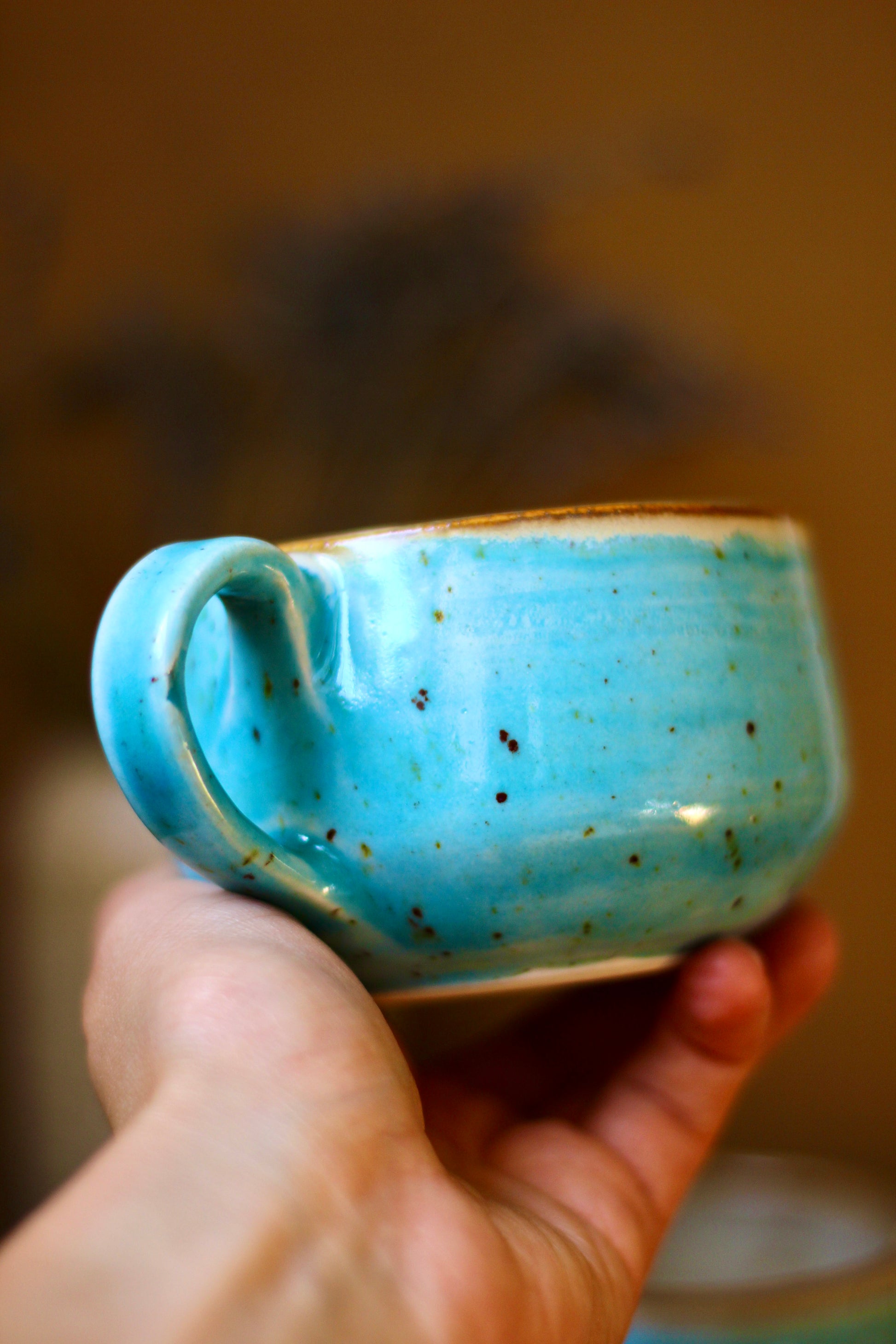 Keramický hrnček je vyrobený z kameniny, ručná práca na kruhu.