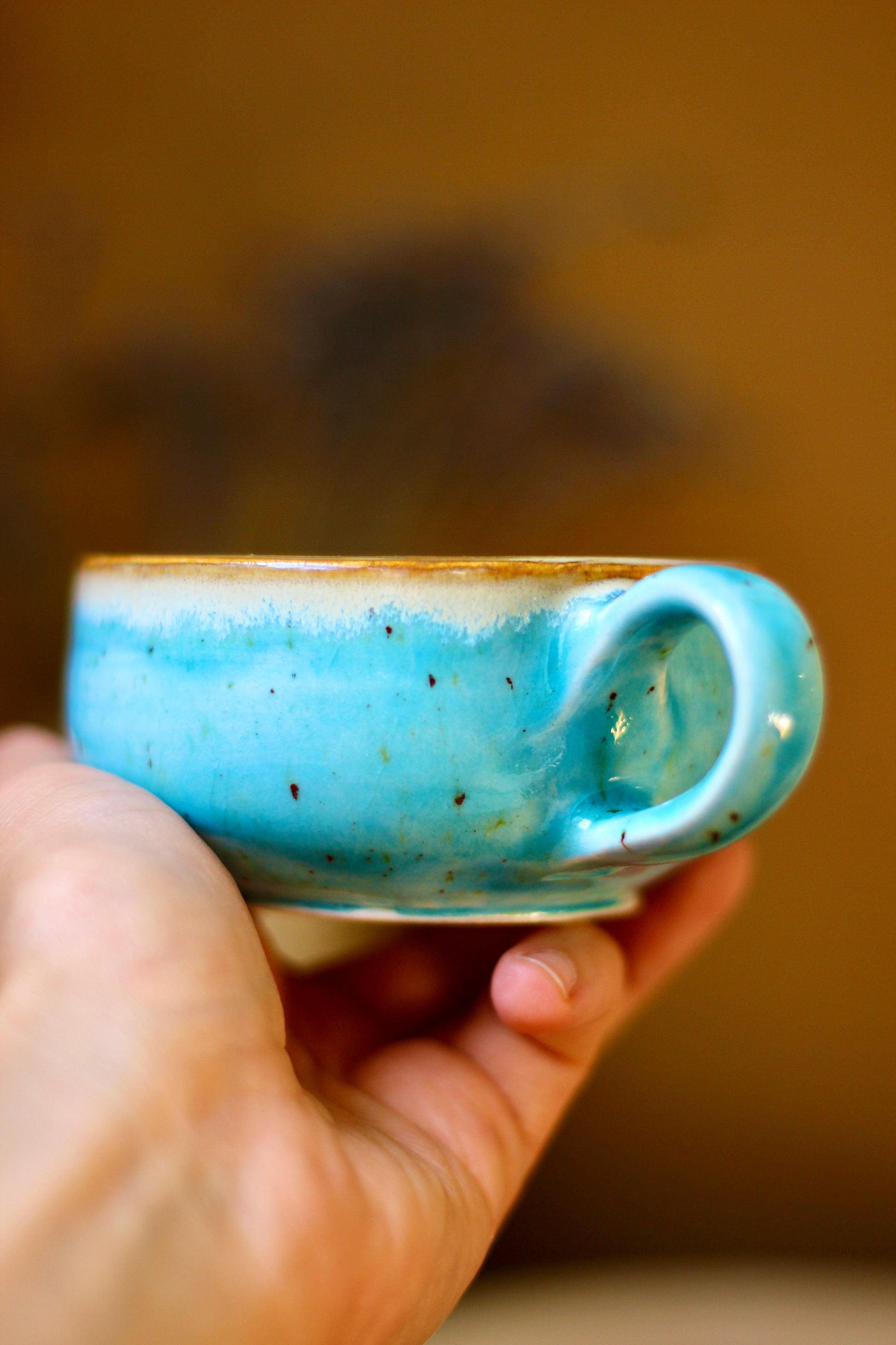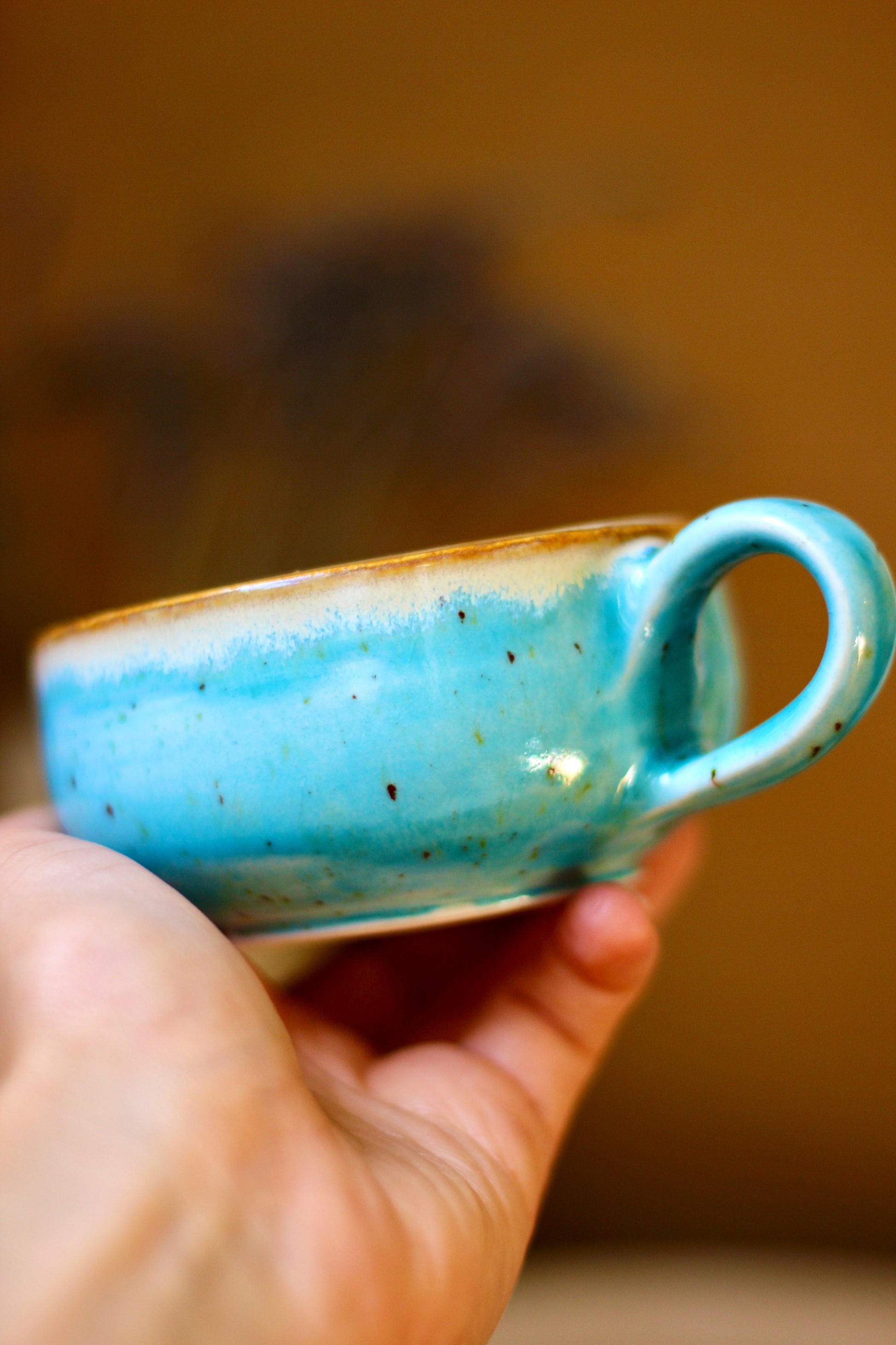 Ručne vyrobená keramická šálka. Svojim tvarom je výborná na nápoj podľa vášho výberu. Šálka je vytočená na kruhu z vysoko kvalitnej kameniny či porcelánu a pálená dvakrát na vysokých teplotách. Keramika je tak pripravená na bežné použitie.