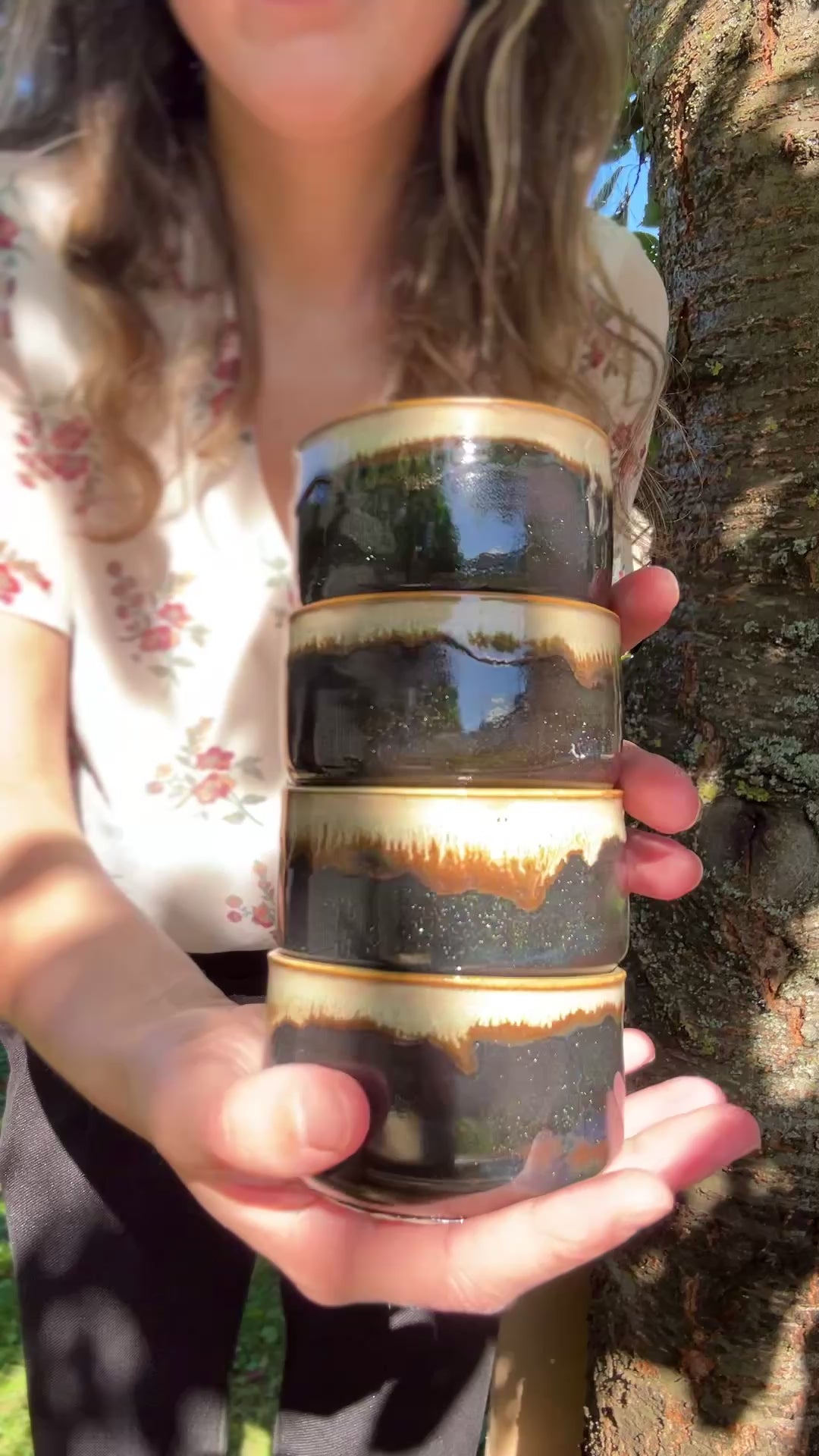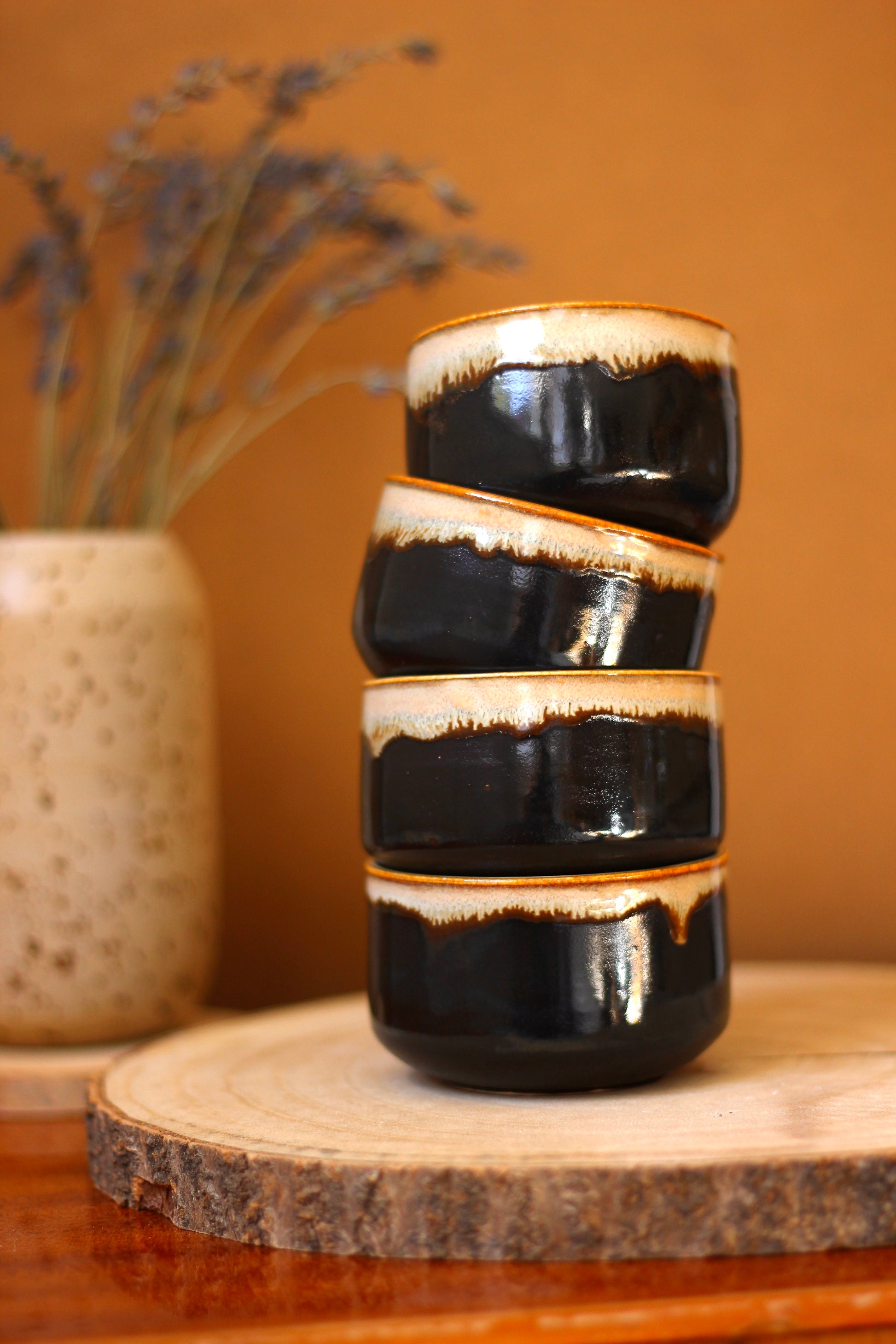 Šálka je z vonkajšej strany prijemná na dotyk. Vnútro šálky je glazúrované jednou z glazúr "Piesok, Bodkovaná vanilka, Ruža alebo Tyrkys". Viď foto vnútra šálky. Šálka je zo spodu neglazovaná.