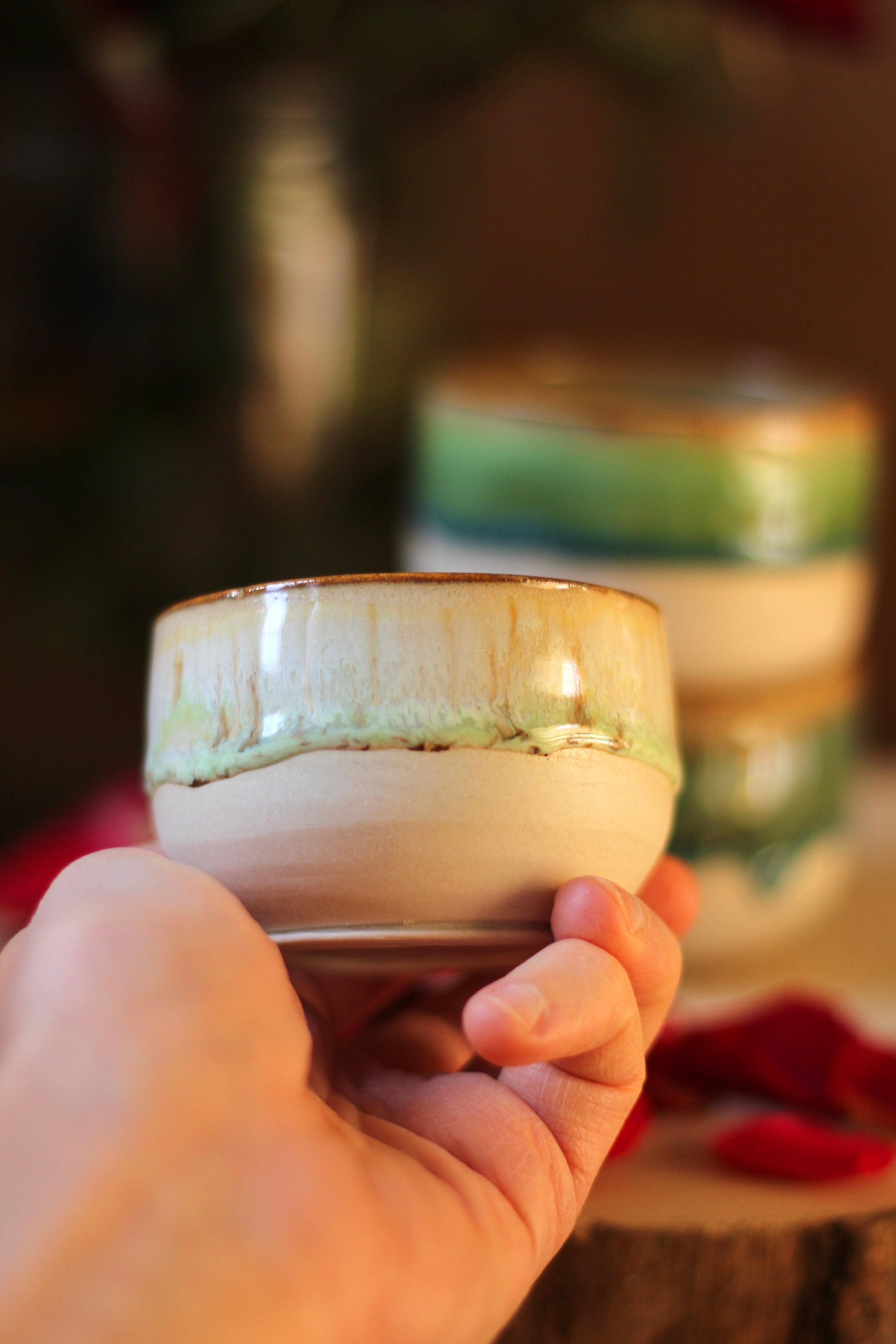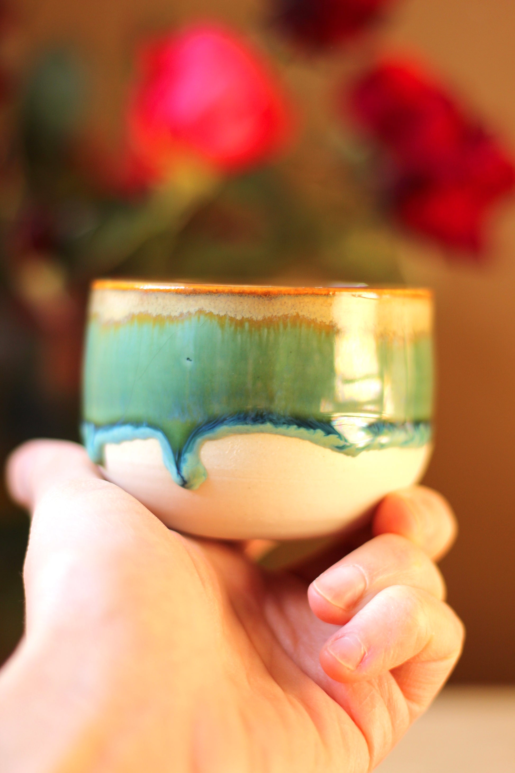 Keramický hrnček je vyrobený z kameniny, ručná práca na kruhu.