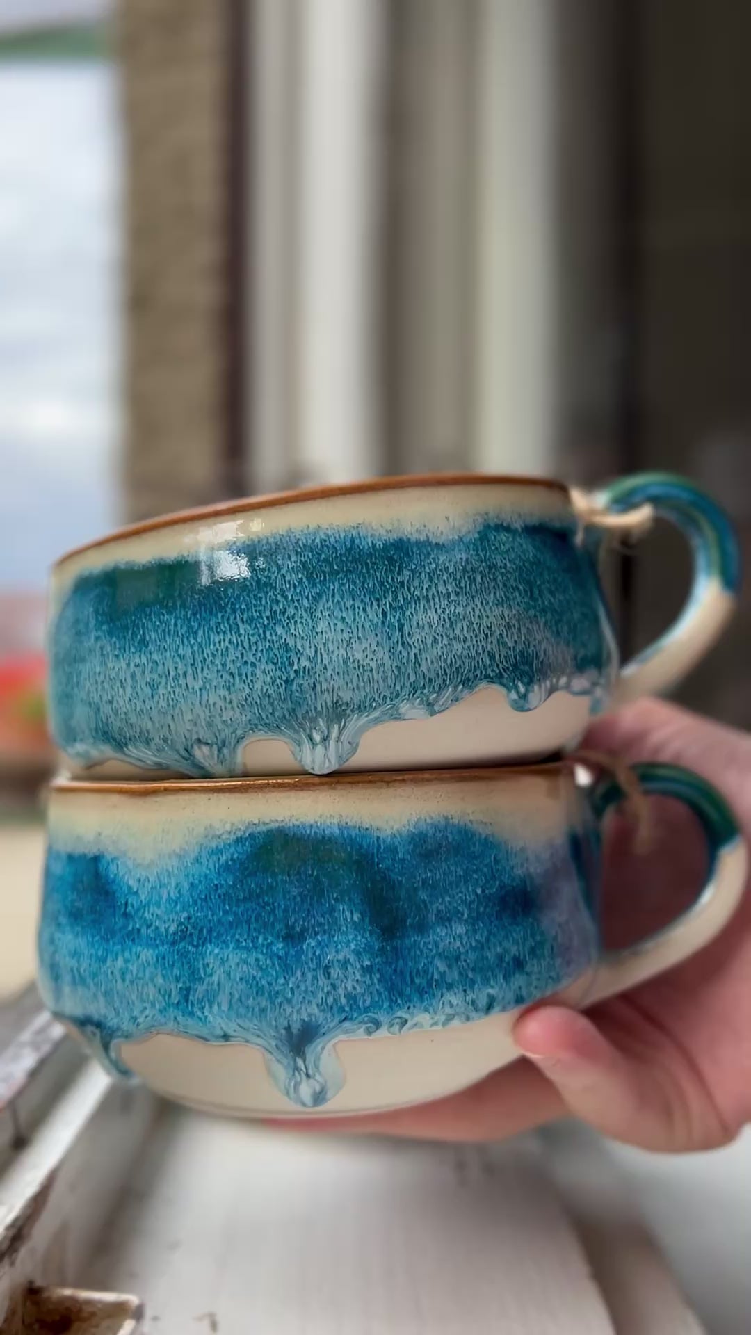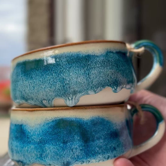 Keramický hrnček je vyrobený z kameniny, ručná práca na kruhu.
