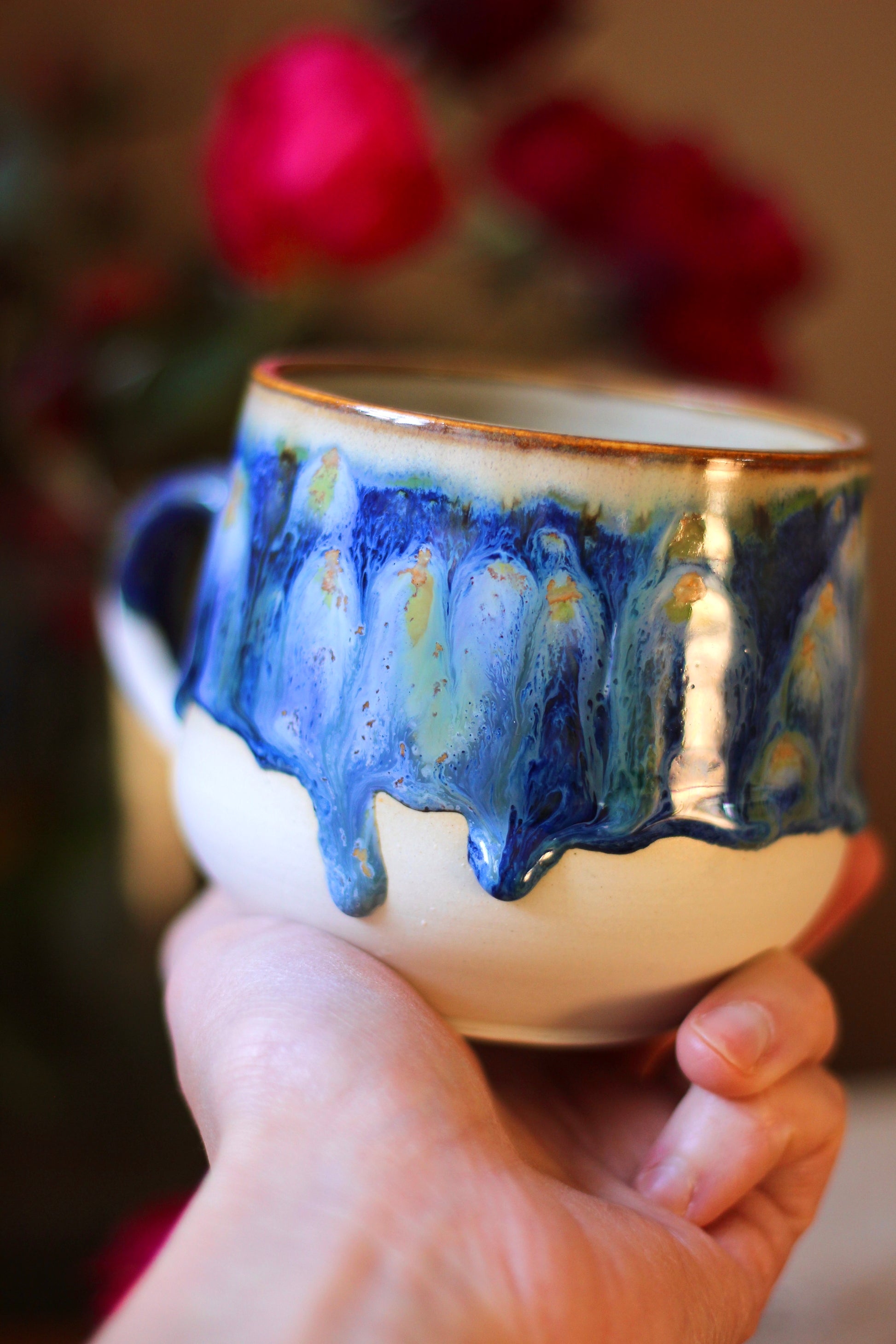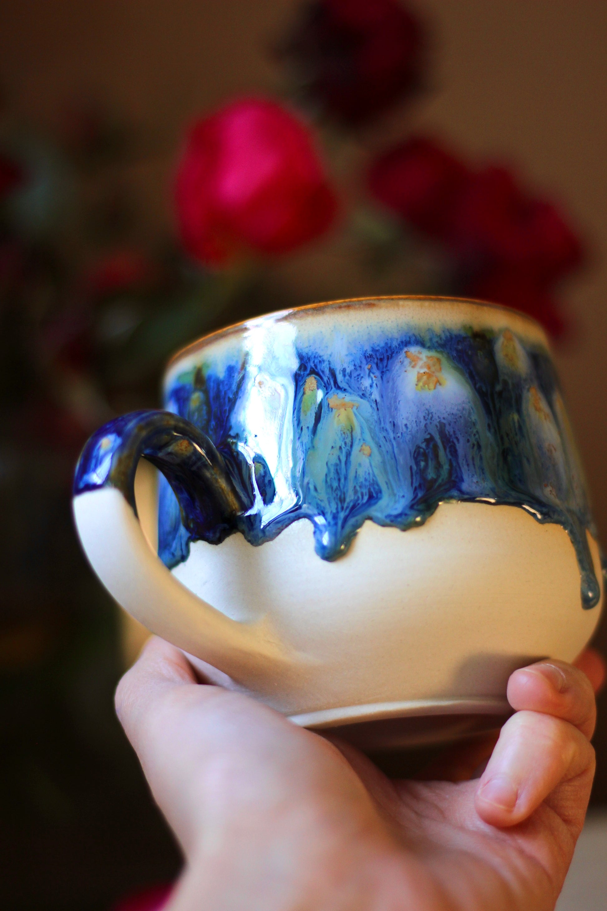 Keramický hrnček je vyrobený z kameniny, ručná práca na kruhu.